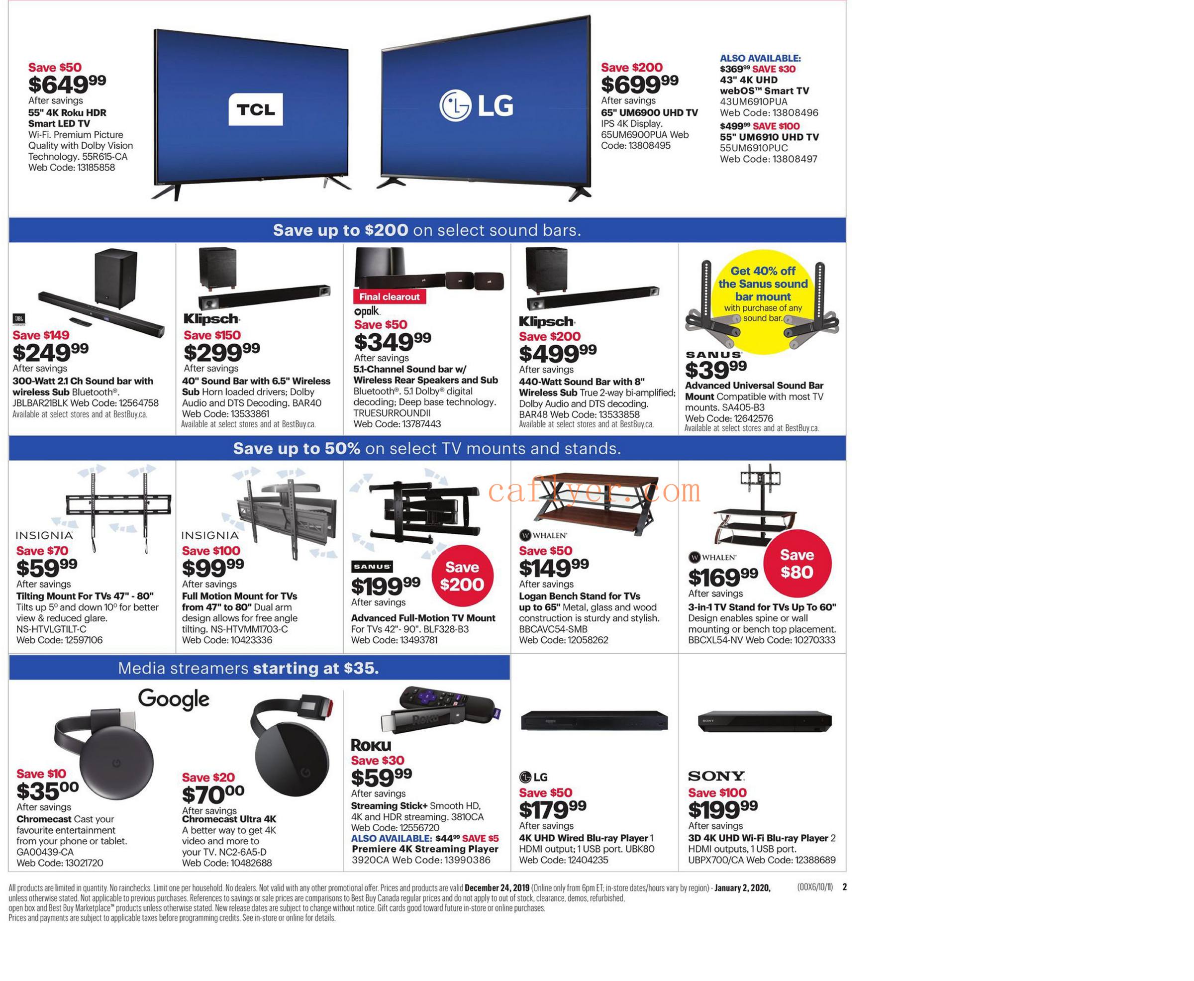 Best Buy Boxing Day/week节礼日特价宣传单!2019 加拿大最大电器商Bestbuy(百思买)的Boxing Day/week打折优惠宣传单出来了! 优惠期:12月24日2019-1月2日2020 破门优惠将于12月26日门店早上6点开始。网络优惠将于12月24日晚上6点开始。 所有电器统统打折~看上喜爱的要赶紧咯,打折厉害的商品通常很快被抢光~