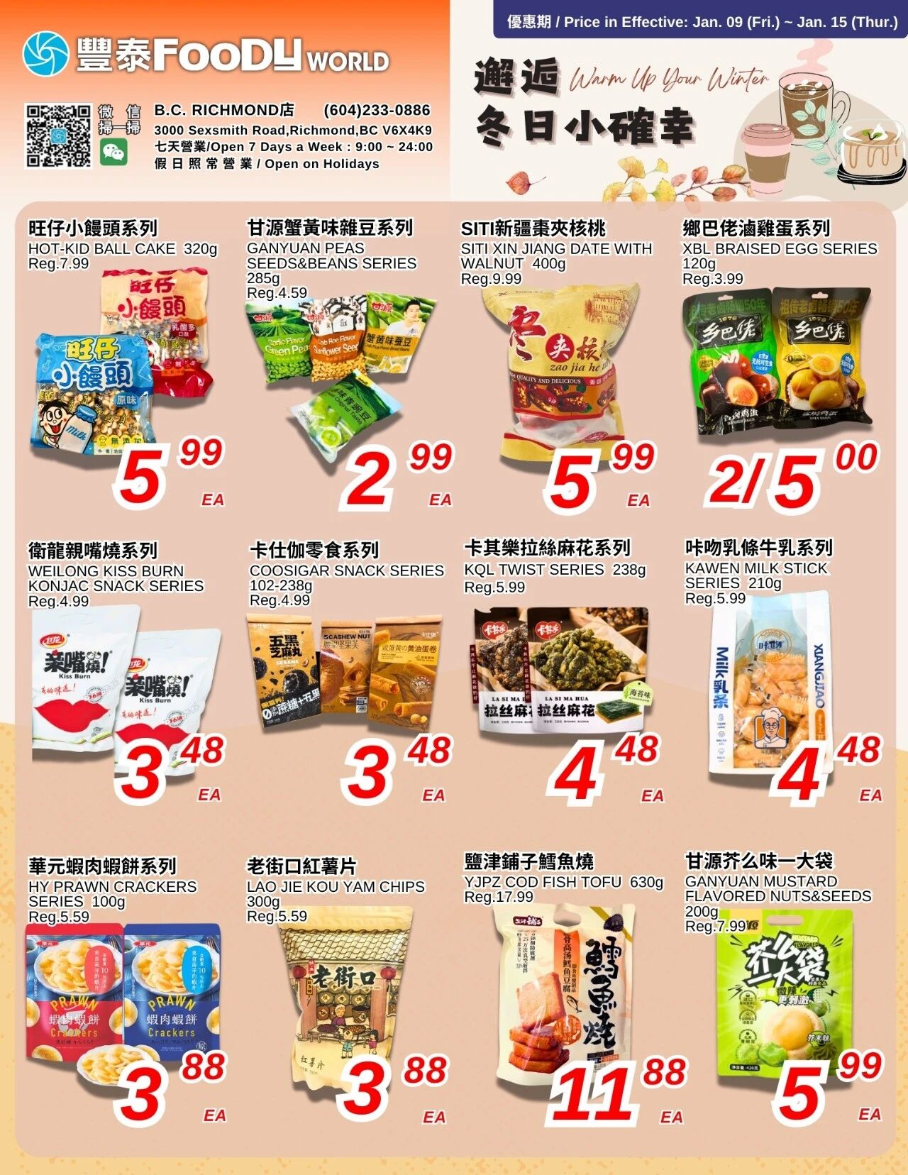 以上为豐泰超市B.C. Richmond 2026年1月9日至2026年1月15日的热销信息。如有排版错误,请以店内标示为准。优惠活动不适用于商业批发行为。