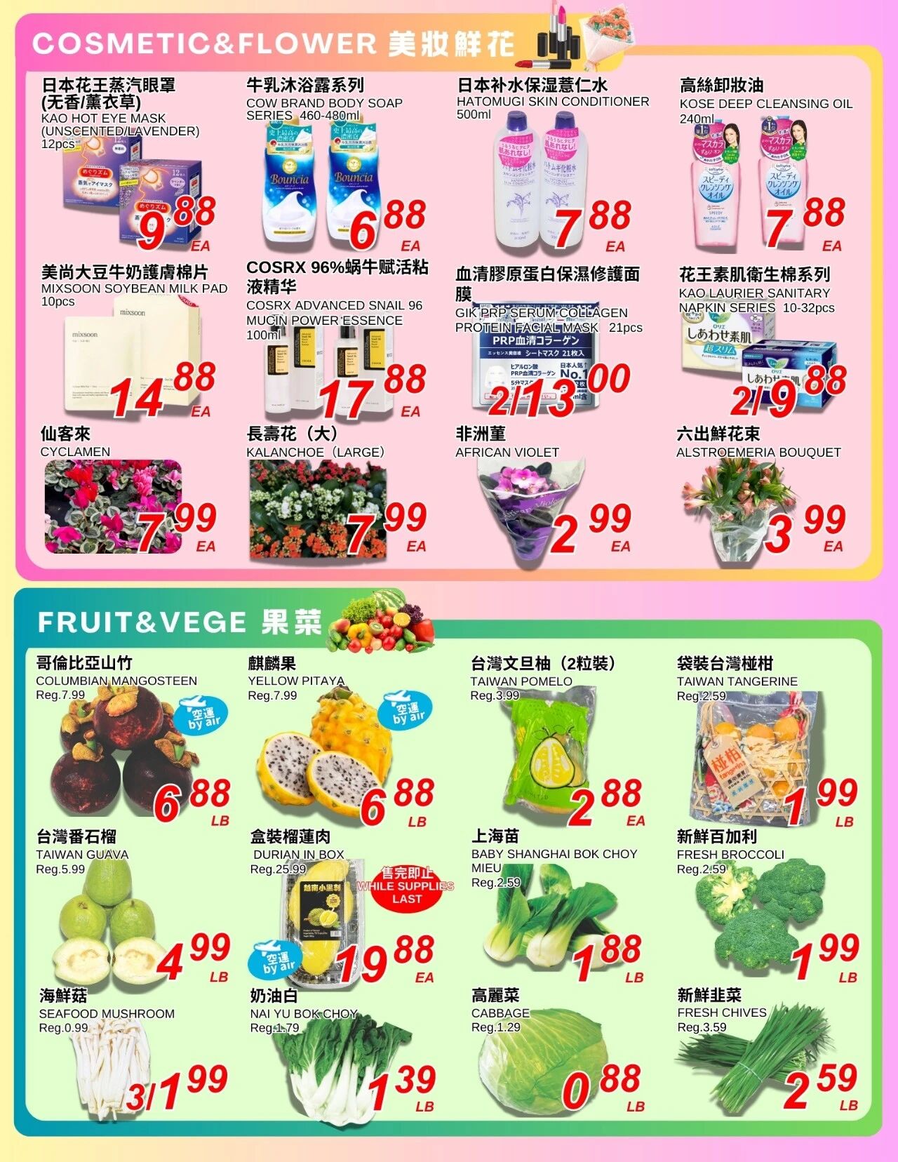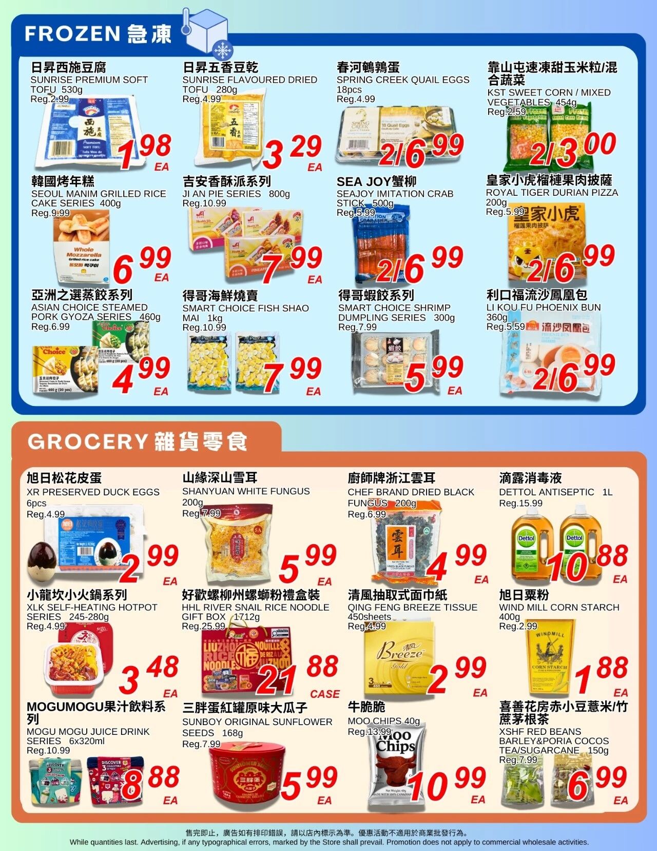 欢迎查看丰泰超市特价优惠BC省列治文店。各类亚洲食品,杂货,冰货,海鲜,应有尽有。更多优惠信息,请查看www.caflyer.com