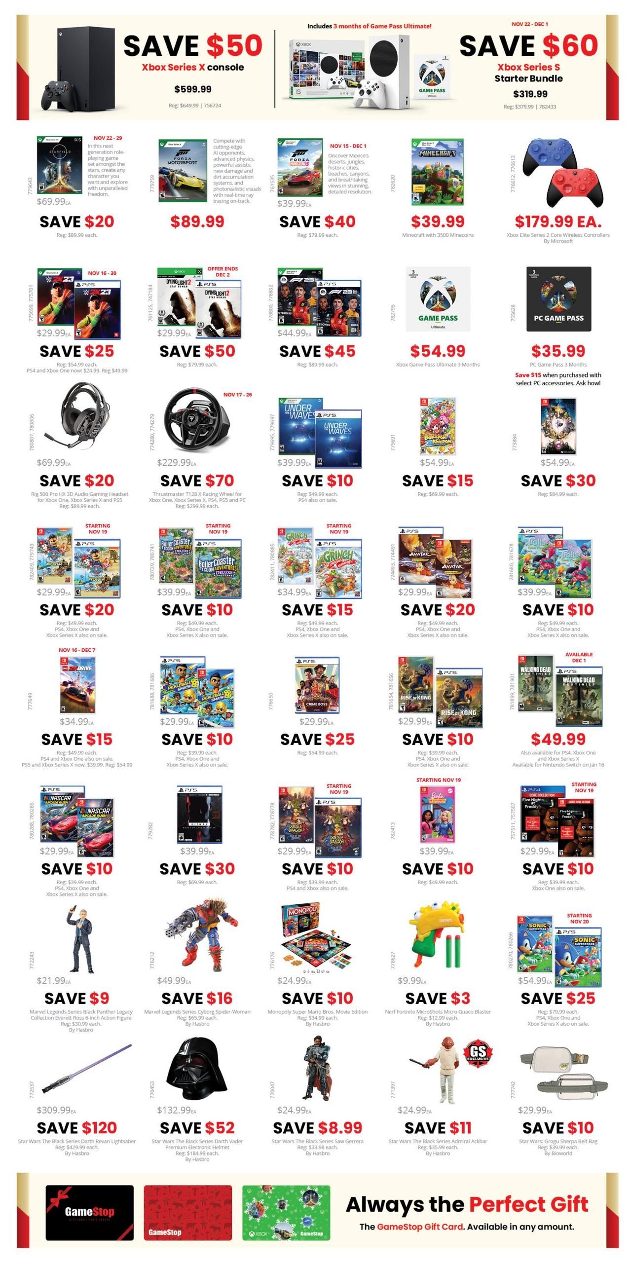 GameStop游戏驿站黑五特价信息11月18日-11月28日2023 GameStop Corp.是一家美国视频游戏、消费电子产品和游戏商品零售商。公司总部位于德克萨斯州格雷普韦恩(达拉斯郊区),是全球最大的视频游戏零售商。