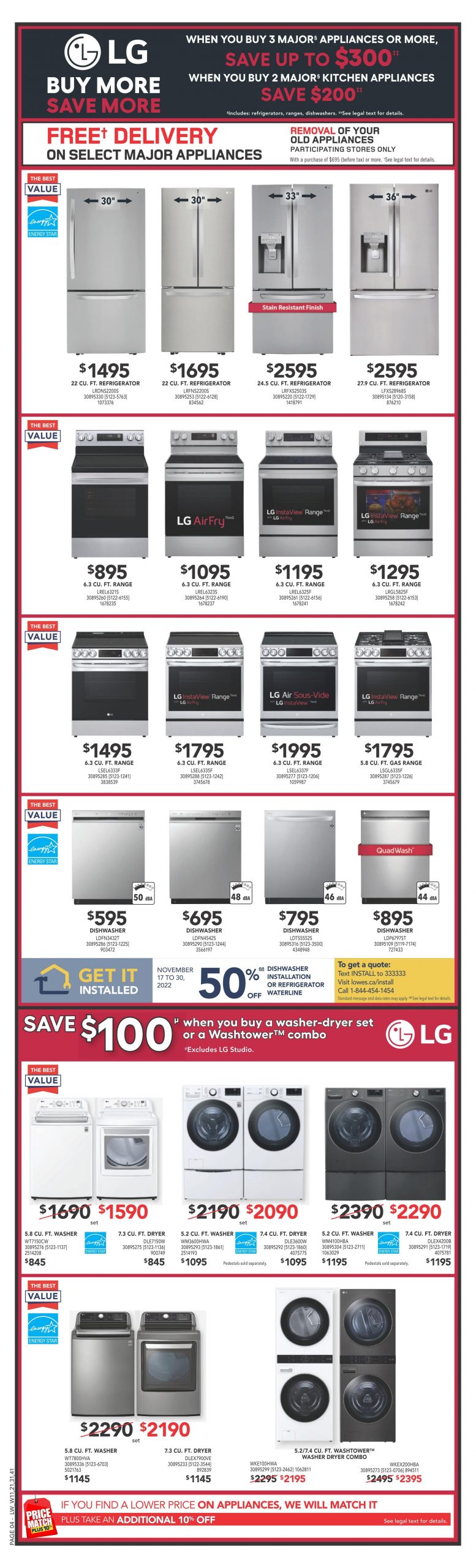 Lowe’s黑色星期五2022特价信息来咯!要购买家电或者工具的朋友们留意一下哦!