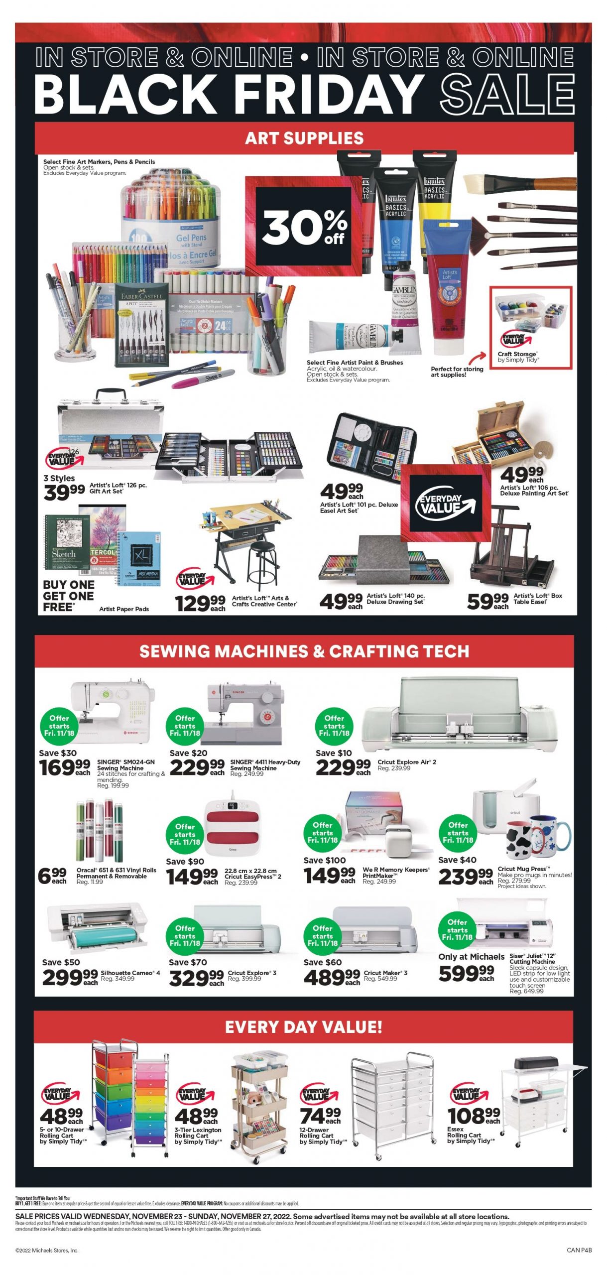 Michaels零售店 黑五特价11月23日-11月27日2022