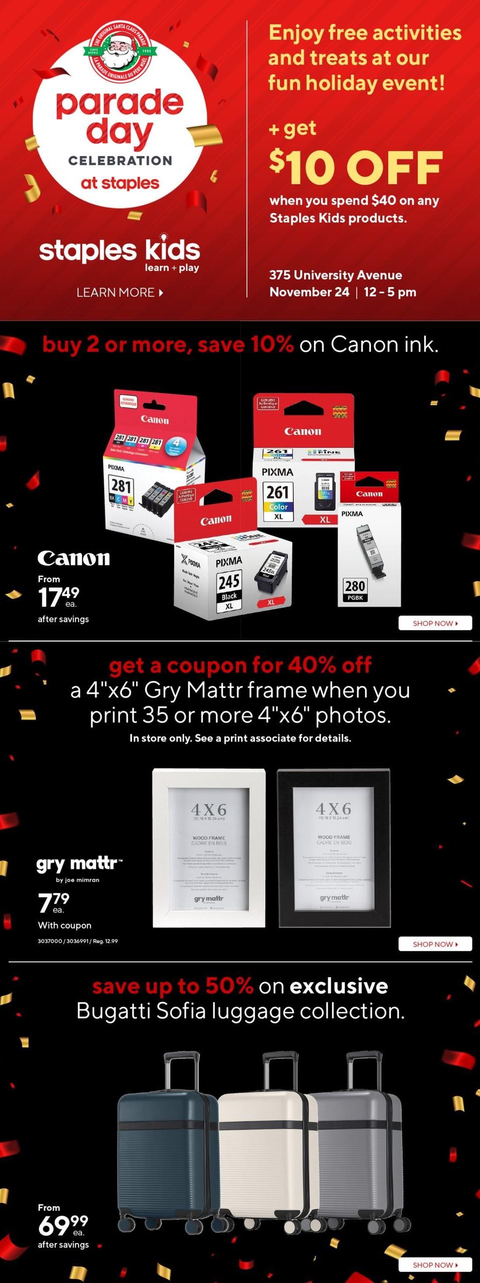 Staples 黑五特价 11月20日 – 11月26日, 2024 大温地区最大型连锁文具店,里面有各类办公用品,电脑,电器以及配件等等。 省钱省时,扫描大温本周特价微信号,获取更多特价传单信息,一起做精明消费者。 更多更全商家特价优惠信息,尽在大温本周特价www.caflyer.com