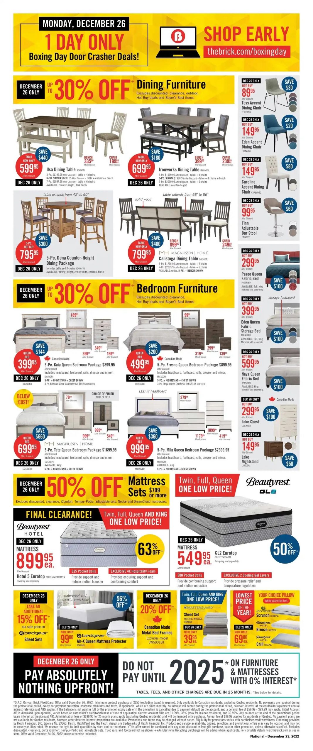 加拿大知名家具电器店The Brick Boxing Day 节礼日特价信息来啦!