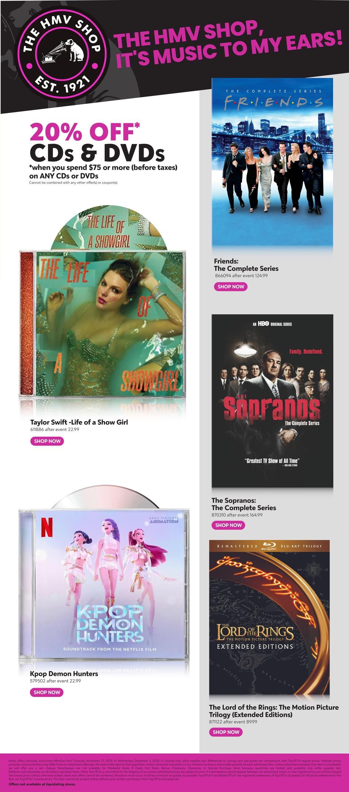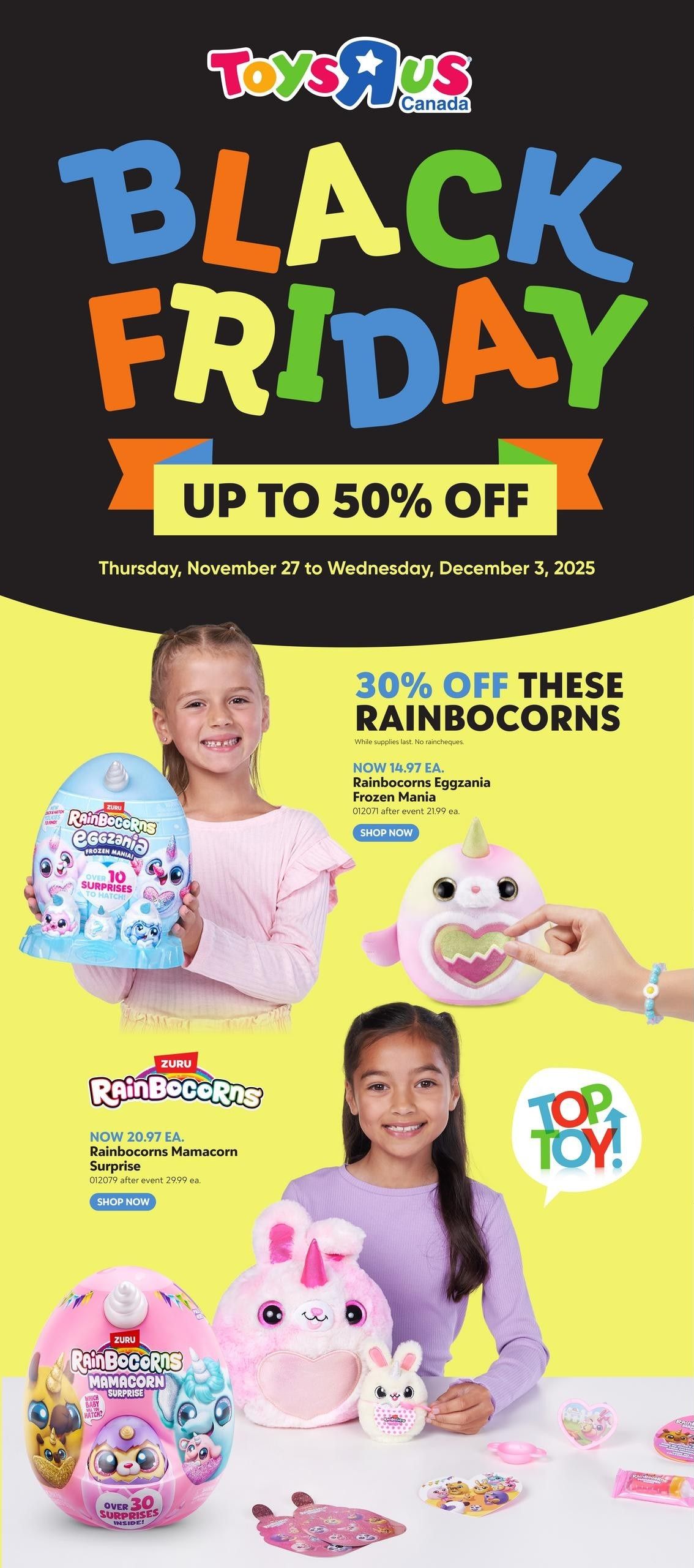Toys R Us 玩具反斗城 黑五特价 11月27日-12月3日2025 玩具反斗城(英语:Toys “R” Us,在其标志中的写法是Toys “Я” Us)是美国一家跨国大型玩具连锁店,成立于1948年,总部位于纽约都会区内的新泽西州韦恩。1967年由查尔斯·拉扎勒斯(Charles Lazarus)将其现代化,玩具反斗城追溯其起源于1948年由他创立的Lazarus儿童傢具店。他为他的产品添加了玩具,并最终转移了他的重点。该公司从事玩具业已超过65年,在美国有大约800家门店,而美国以外的地区大约有800家门店。
